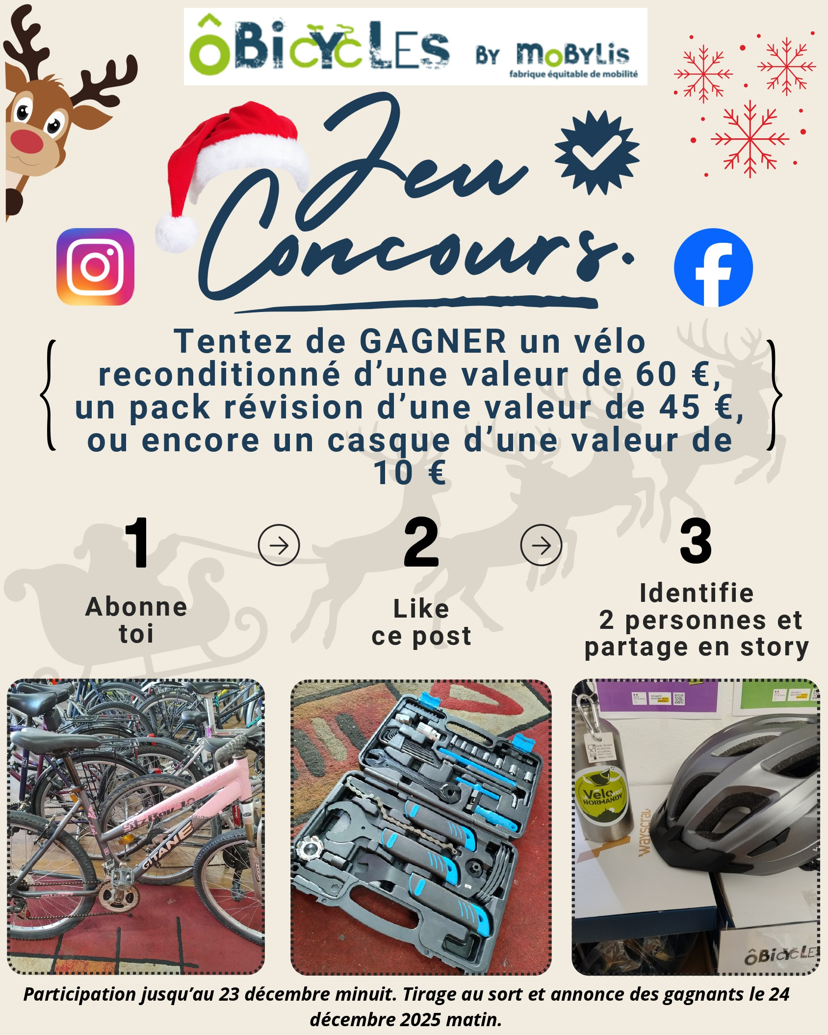 𝐋𝐎𝐓 𝟏 : un vélo reconditionné d’une valeur de 60 € à venir choisir dans nos locaux, 30 rue Maurane, 14500 Vire Normandie
